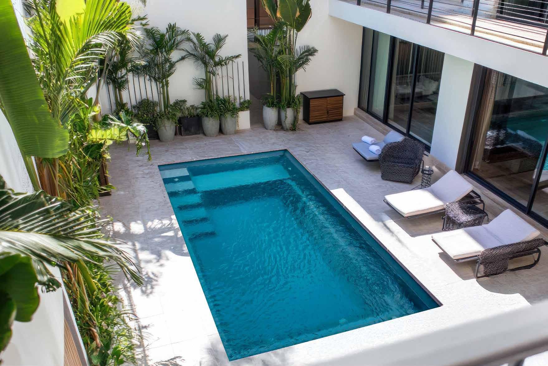 Swimming pool with a ladder.